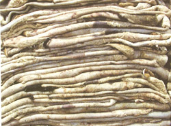 Brief outline of leather production. For a better understanding of what happens at the various stages, compare the numbers with the samples to the right.